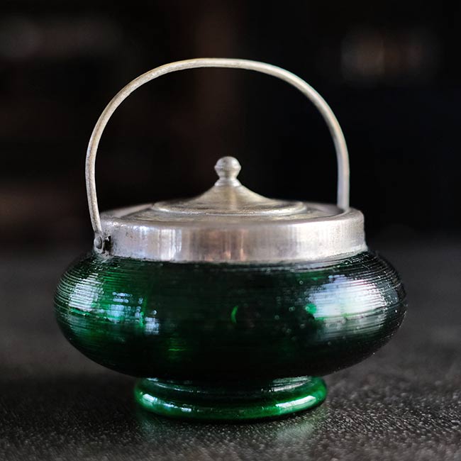 大正~昭和初期 ガラスのシュガーポットS 緑
