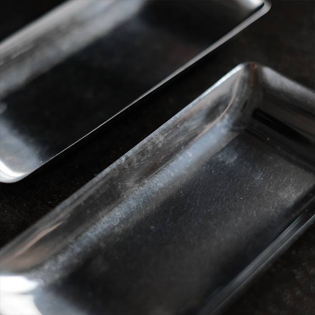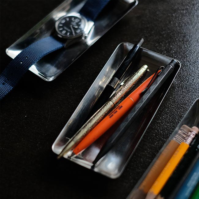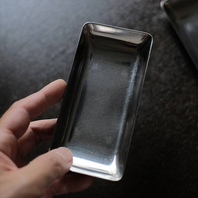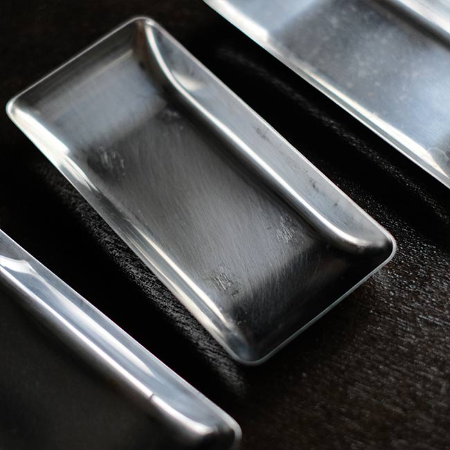 鍼治療に使う鍼(はり)を置いておくためのトレーになります。ペントレーとしては小さいかもしれませんが、アクセサリーや小物をまとめておくのにはいいサイズかと思います。小キズやくすみが見られますことをご了承下さい。