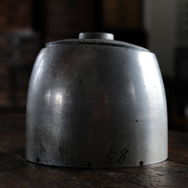 These are aluminum molds that were used to make hats. We have four of these molds in stock this time, most likely for hats, but each one has a different size and top shape.