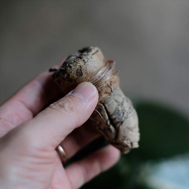 Because of its unusual green color and small base, I thought it was a Western product, but the recycled paper stopper has Chinese characters on it, so it appears to be Japanese. These large bottles were used to transport alcoholic beverages, distilled water, medicines, etc.