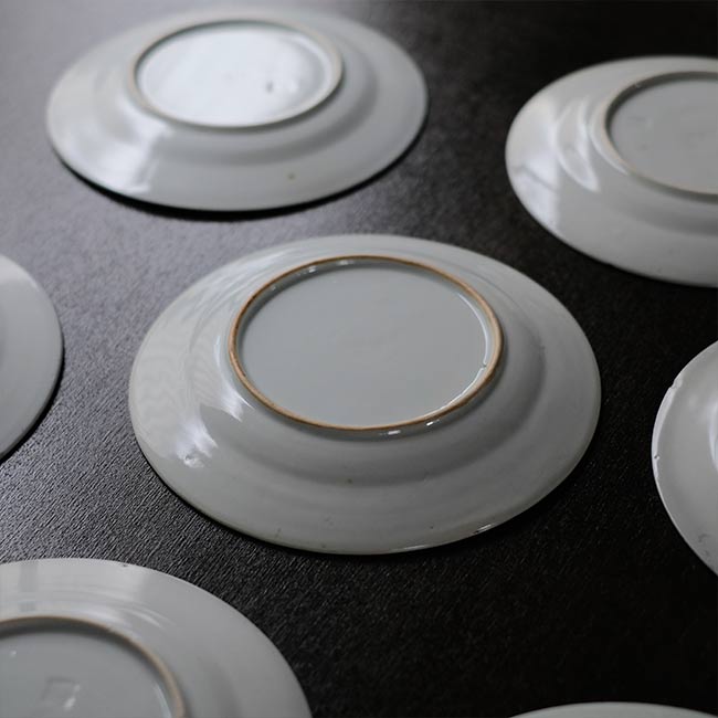 Marks from the kiln, such as variations in line thickness and shading, ink stains, small spots, blemishes, and small holes, can be seen. Please note that as these were used for commercial purposes, there may be traces of wear. If you are used to old tableware, this may not be a big deal. Items with scraped edges are discounted.