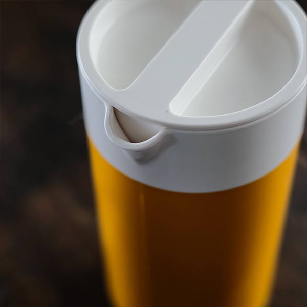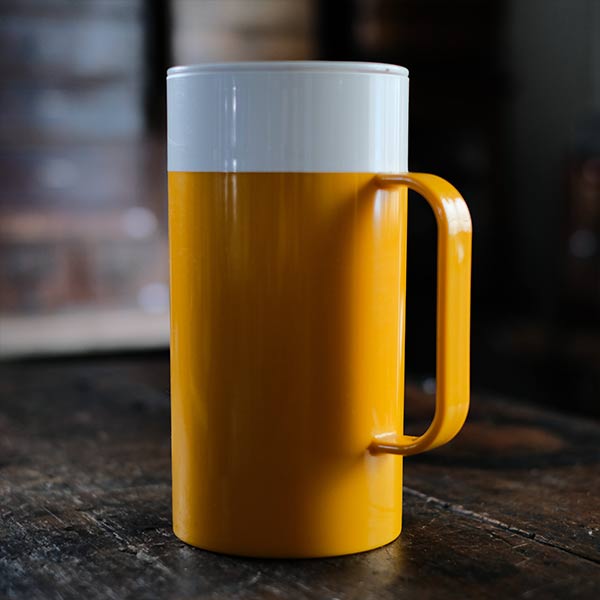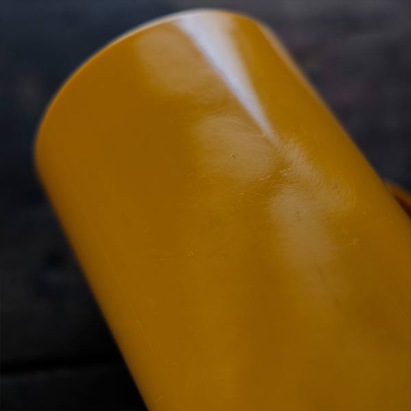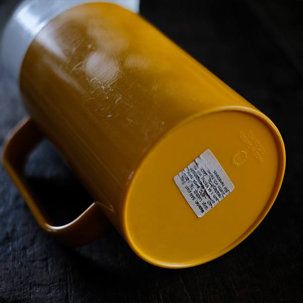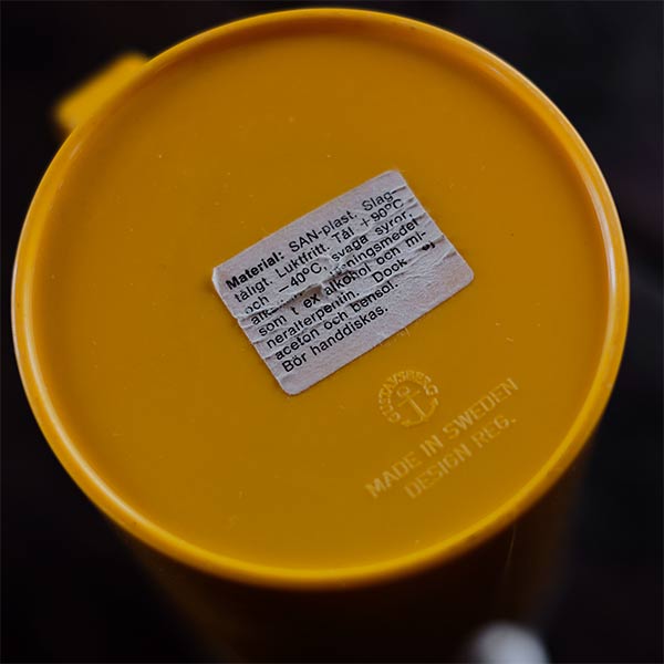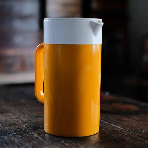 This plastic pitcher is made by Gustavsberg in Sweden. Designed by Sven-Eric Juhlin, it has a cylindrical body and a capacity of 1 liter. It doesn't have any particularly unusual gimmicks, and is a fairly ordinary pitcher, but it is light, durable, easy to handle, and extremely easy to pour from.