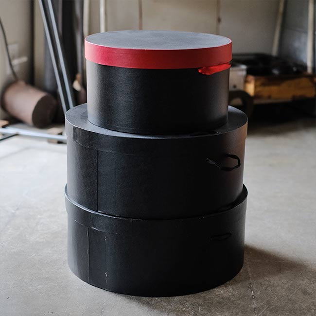 This case appears to have been used to sell and store elegant hats. Made of paper, it's lightweight and easy to handle, making it ideal for storing a variety of items. Please note that there may be minor scratches, stains, and dents.