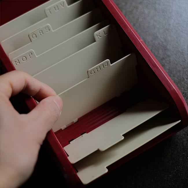 西ドイツ時代のHelit社のカード収納ケースになります。プラスチック製で、蓋は蛇腹式。内部はアルファベットの入った仕切りが付いています。