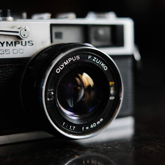 This compact, high-end Olympus camera was released in 1971 as a premium model of the TRIP 35. It is being sold as junk due to some dirt and its inoperability.