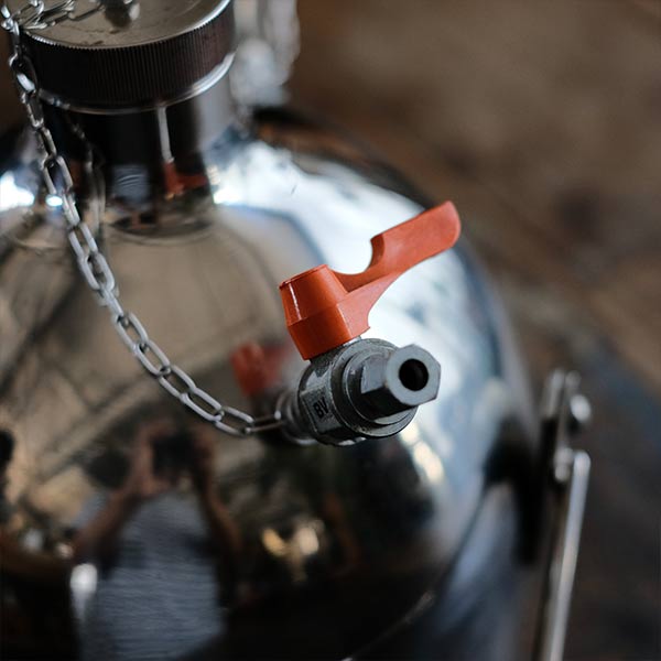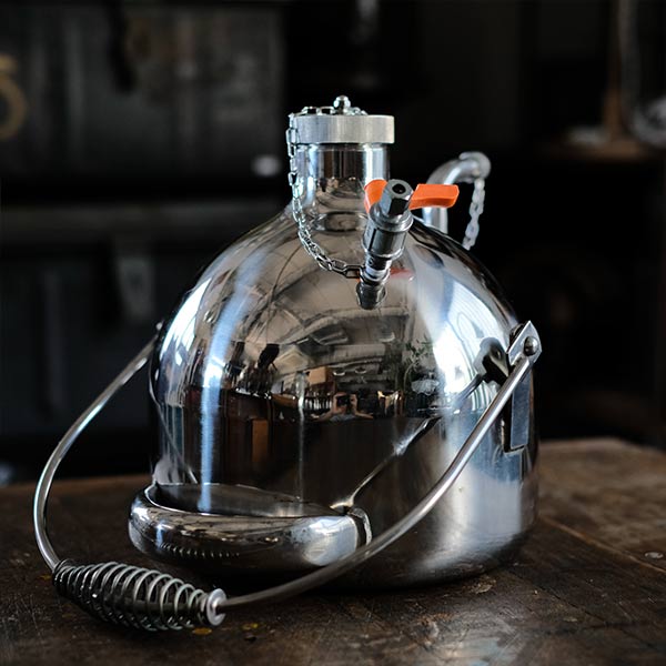 This stainless steel container is designed for safely storing and portioning liquids such as organic solvents. It is robust and easy to use, with a lid to prevent evaporation and gas leakage, a vent valve, and a handle for easy pouring.