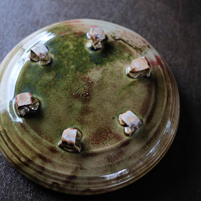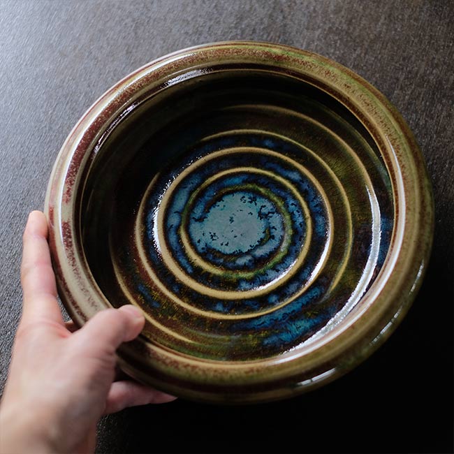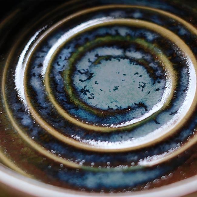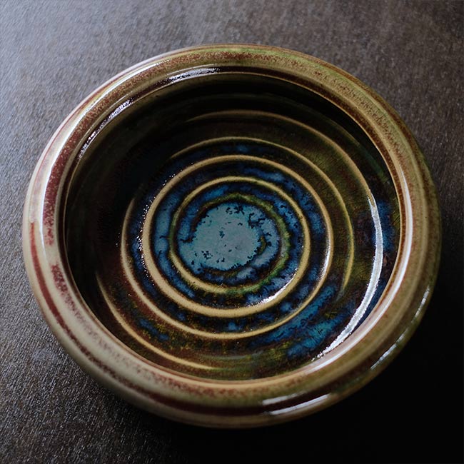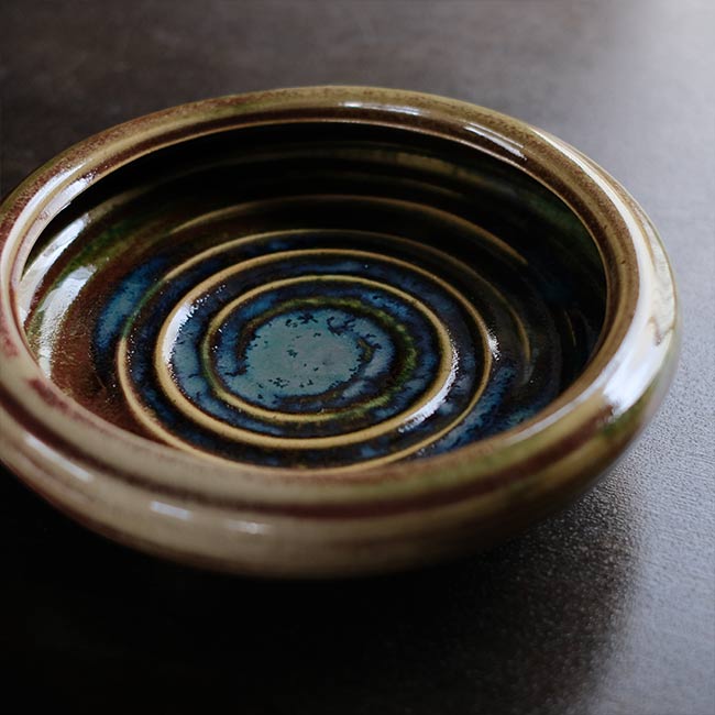 青と緑の釉薬が渦巻きとともにうまく調和していて、洋風な雰囲気も感じます。