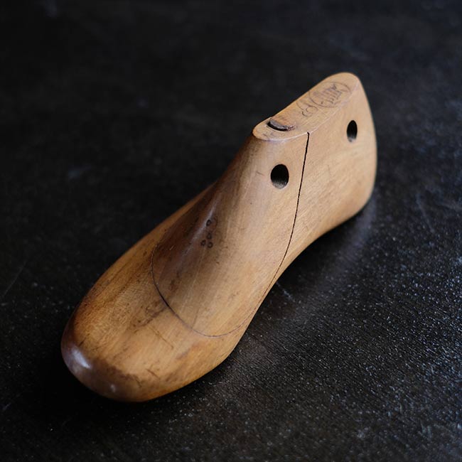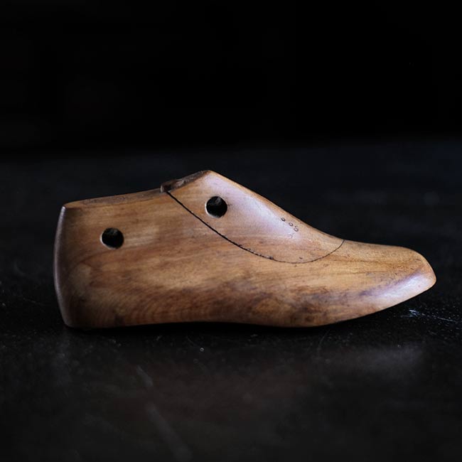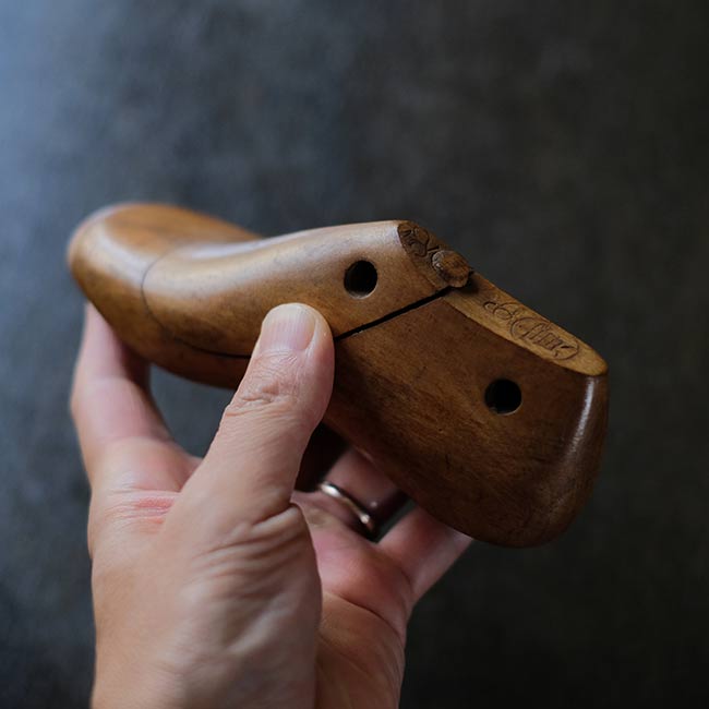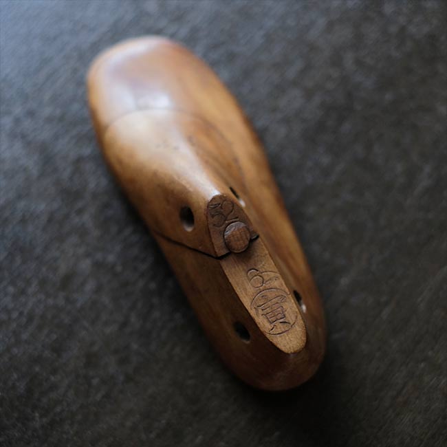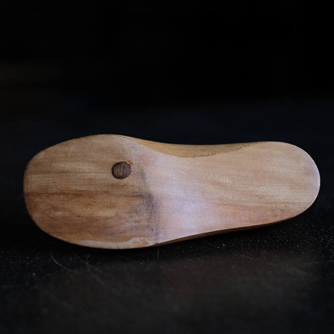 「寅」と入った木製の靴型になります。長さ16cmというサイズも良いですが、色味や艶感も申し分ありません。好きなところに飾ったり、ペーパーウェイトのような使い方もできるかなと。