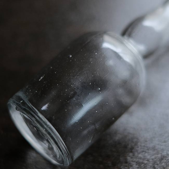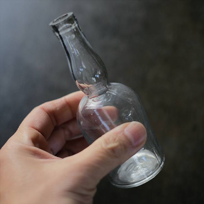 ガラス内に曇りが少し残りますが、水を入れると曇りは消えます。一輪挿しにはもちろん、そのまま飾っても楽しめるかわいらしいボトルです。