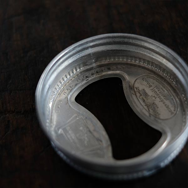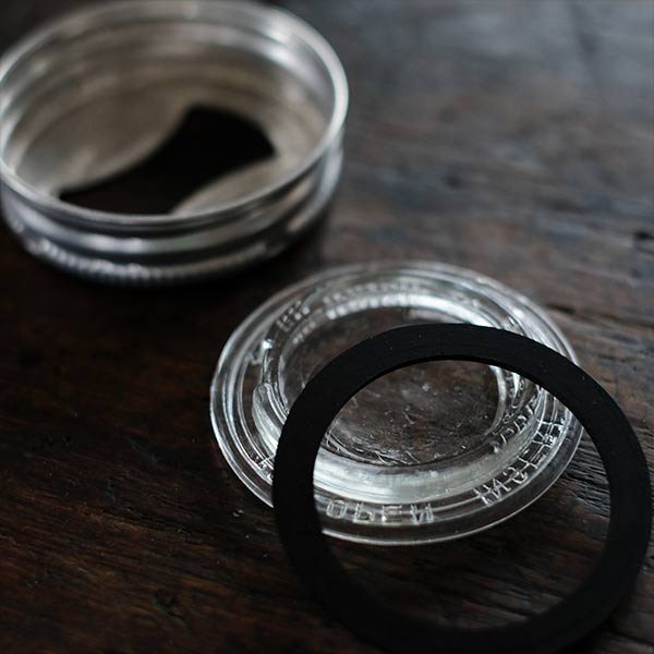 蓋はさすがに損なわれていたため、Prestoの実用的な蓋とゴムパッキンを当店の方で用意しました。ガラスの蓋を金属のリングで締めて留める構造になりますが、ジャーの中身はガラスにしか触れないため、食べ物の保存にも安心して使えるというメリットがあります。