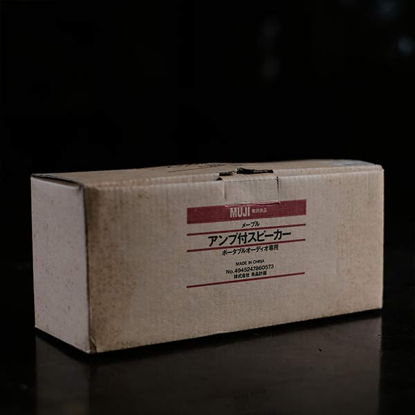 無印のポータブルオーディオ用の小型スピーカーになります。箱にシミが残りますが、スピーカー自体に使用感はほとんどなく、キレイな状態を保っています。