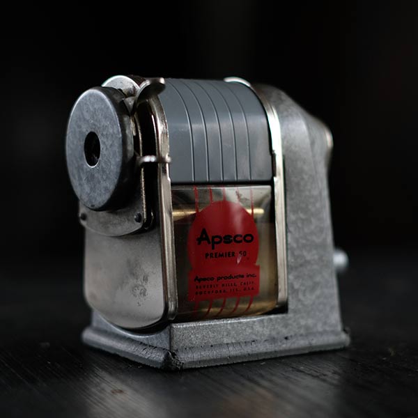 1950年代頃のものと思われるApsco(Automatic Pencil Sharpener Co.)の鉛筆削りです。