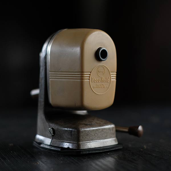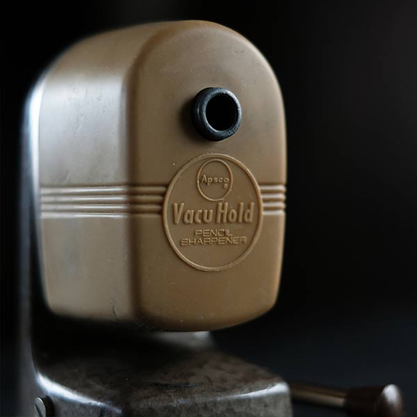 1960年代頃のものと思われるApsco(Automatic Pencil Sharpener Co.)の鉛筆削りです。