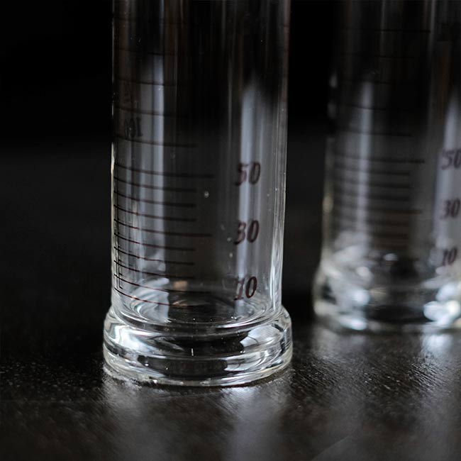 1960~1970年代頃のものと思われる、Arrowブランド(Yamaichi)の筒型のメスシリンダーになります。箱に入ったまま残されていた未使用品で、箱には液量計と書いてありました。