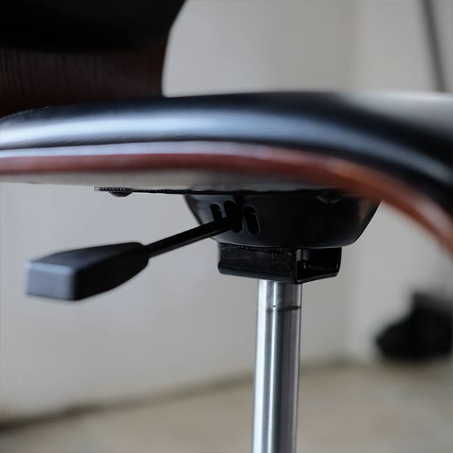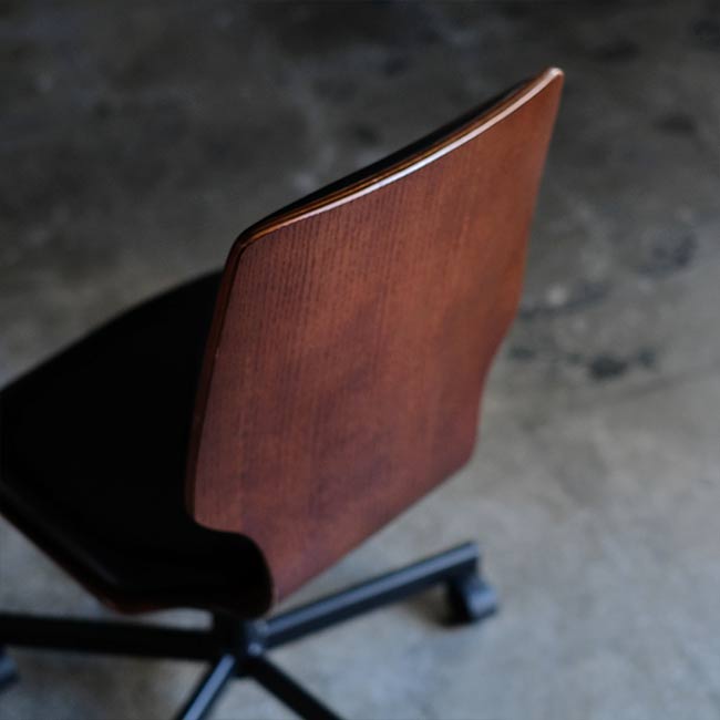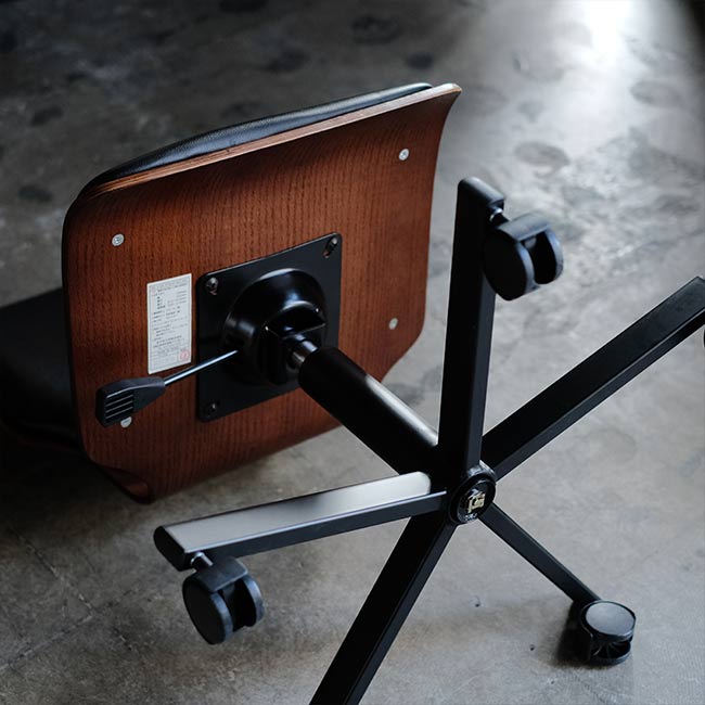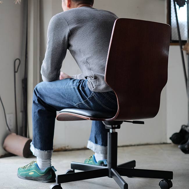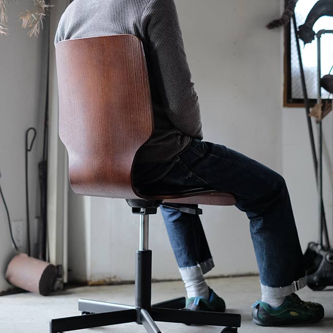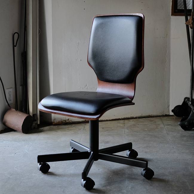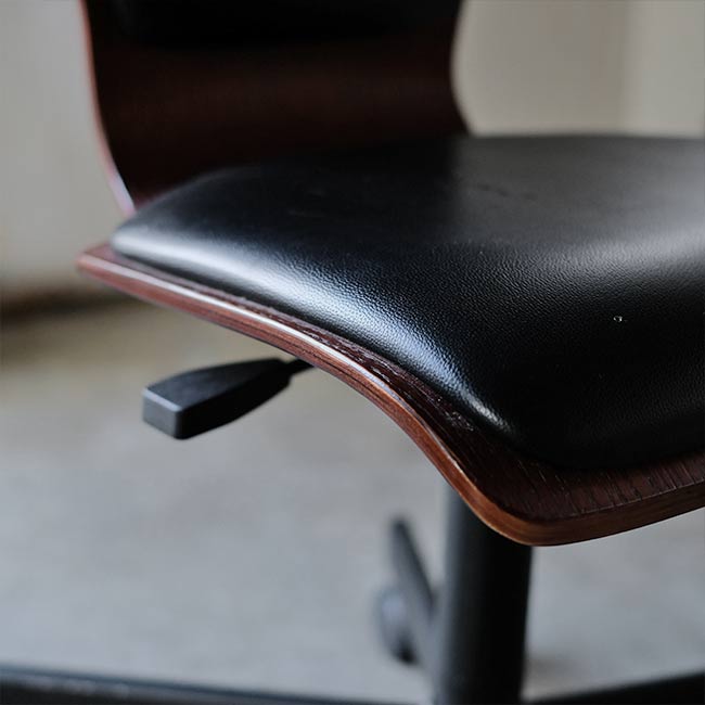 大阪はあずま工芸のデスクチェア。決して多機能ではありませんが、木とビニールレザーをシンプルに組み合わせてあって、デザイン決して悪くありません。そして何より安価なところがオススメのポイントです。