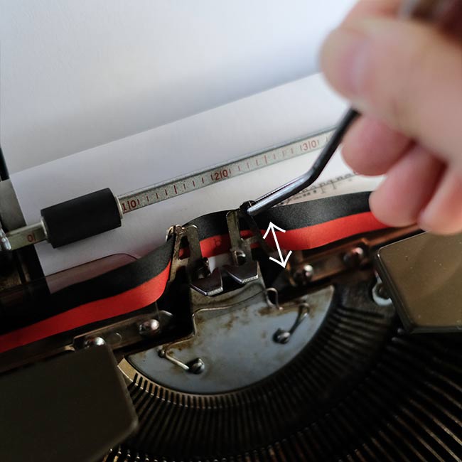 キーボード右のレバーでインクの色の変更ができます(上が赤、下が黒、中央はリボンをはさまずタイプされます)。