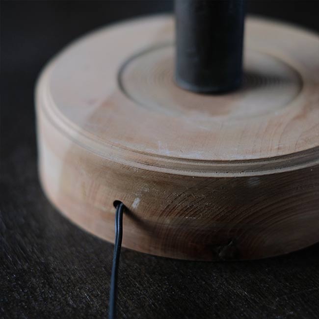 高さは50cm弱ありますので、床や玄関に置いてもよし。もちろんテーブルや棚の上でも。プラグとコードは新品に交換。電球はE26を使用(別売り)。サビや歪み等ありますことをご了承下さい。