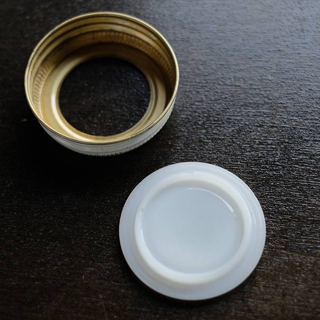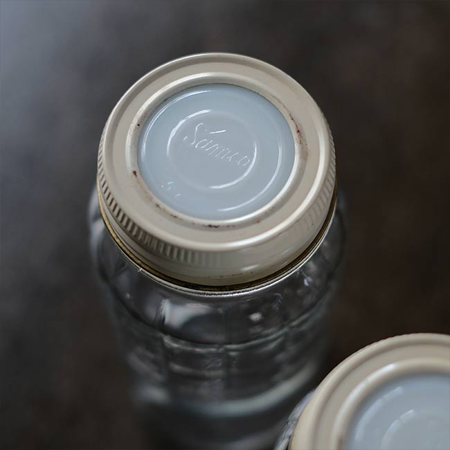蓋のかぶせ部分はミルクガラスですので、食品の保存にも安心してお使いいただけます。ただしミルクガラスの小さな欠けや金属リングの多少のくすみはご容赦下さい。