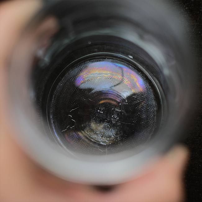 在庫は2本ありますが、底のマークを見る限り製造はかなり古く、1931年と1933年となります。ガラス面には小キズや多少ギラツキは見られますが、強いダメージは見られません。ただし蓋が損なわれていたため、Samcoの蓋を用意しました。