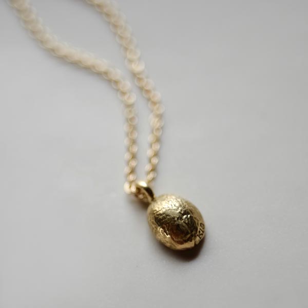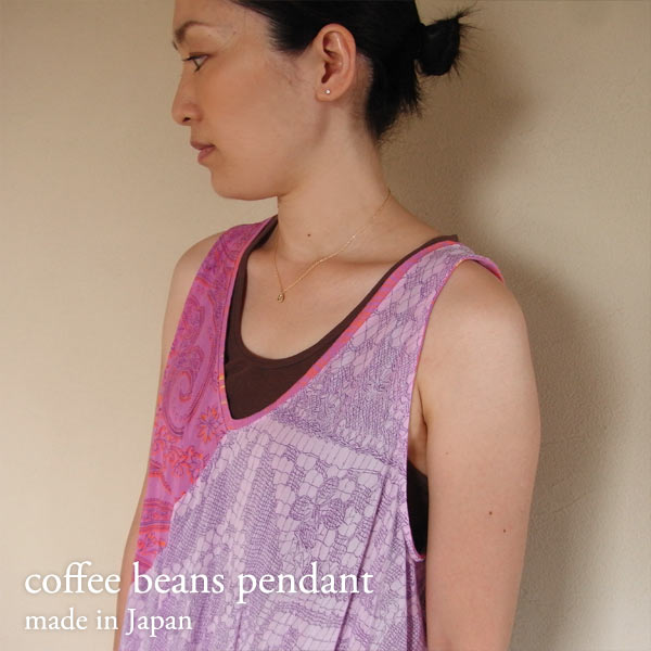 このコーヒー豆のトップにあわせるのは、飽きのこないオーソドックスなあずきチェーン。ゴールドですが、トップもチェーンも控えめなサイズ感なので、ゴテゴテした印象はまったくなく、シルバーアクセサリーのような感覚で毎日気軽に着けていただけます。