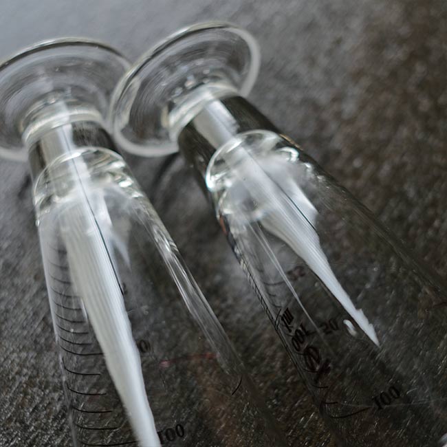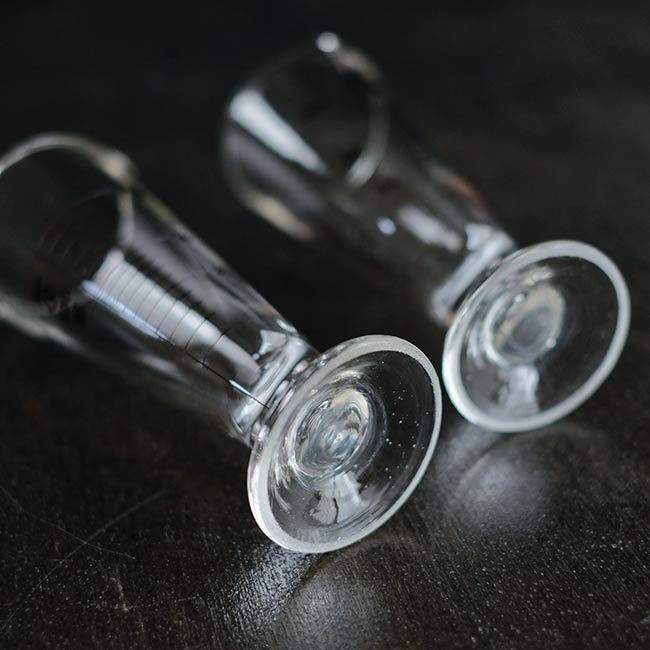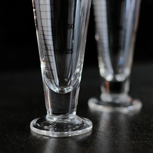 1970年代頃のものと思われるメートルグラスになります。箱に入ったまま残されていた未使用品で、箱には「硬質硝子製」の表示があります。