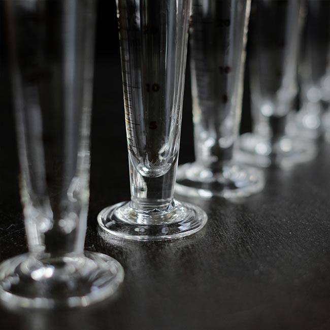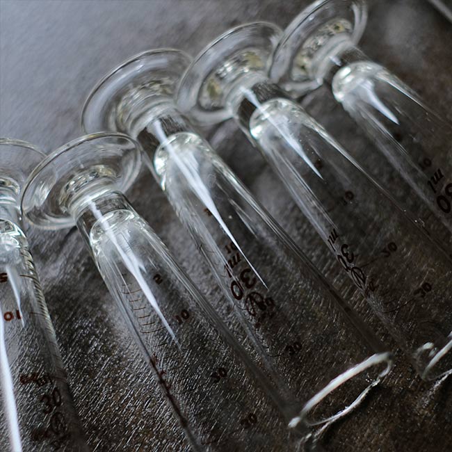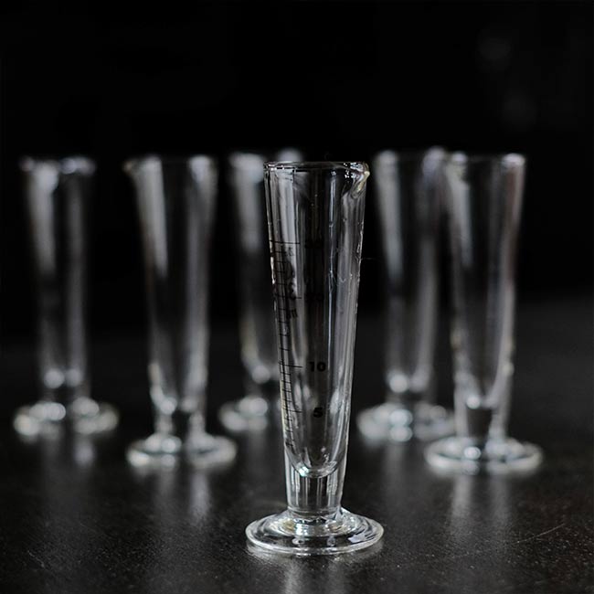 1970年代頃のものと思われる小さなメートルグラスになります。箱に入ったまま残されていた未使用品で、箱には「硬質硝子製」の表示があります。