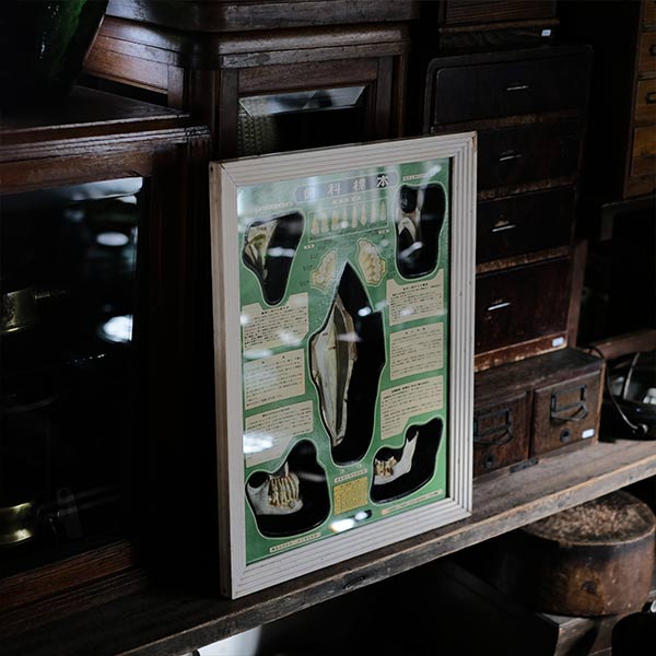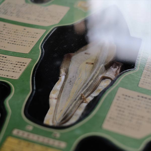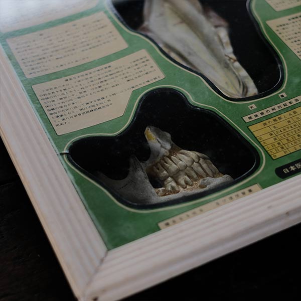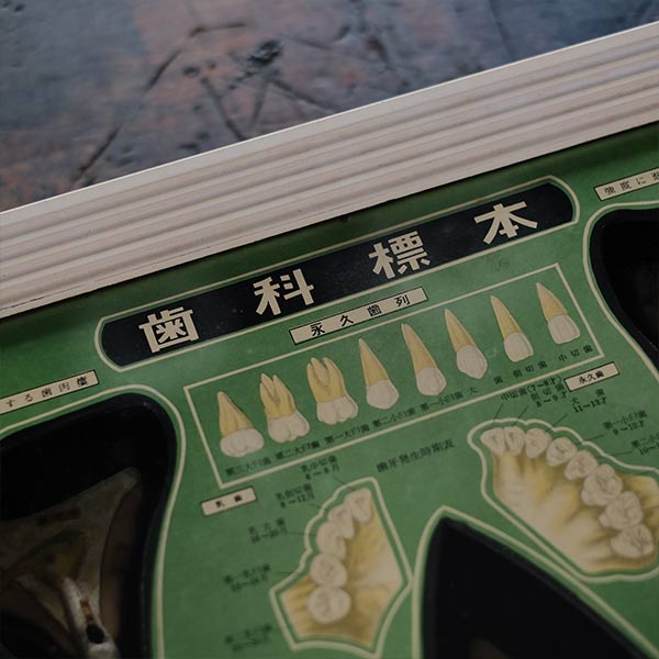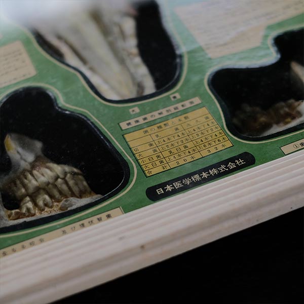 日本医学標本株式会社の歯科標本。旧字は使われていないものの、言葉の言い回しが明らかに古く、1950~1960年代あたりのものではないかと想像します。