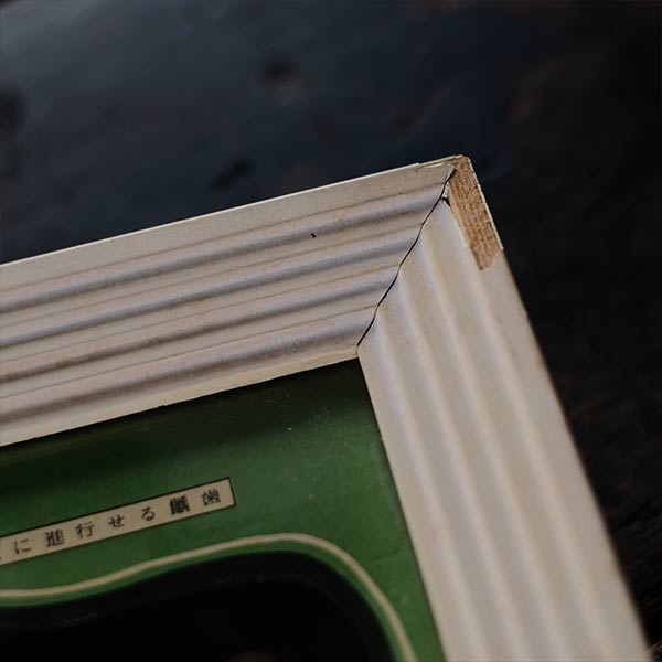 歯の標本はリアルで精巧なつくりをしていますが、この手のものとしてはさほど気持ち悪さは強くないかなと。背景のグリーンがとてもいい感じ。上部に金具が2つ取り付けてあります。