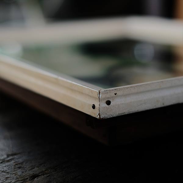 木枠の欠けやガラス内部の曇りが見られますが、ひどいレベルのダメージは見られません。