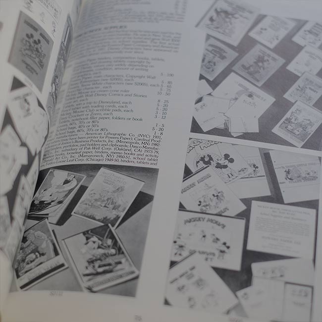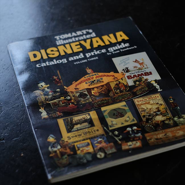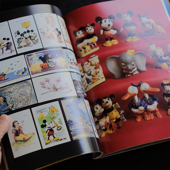 1951~1985年までのディズニー作品を時系列で紹介しつつ、ディーラーやコレクターの協力のもと、膨大な種類のディズニー関連商品が集められ、カテゴリー分けをした上で相場価格を掲載。