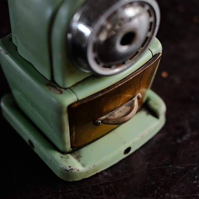 文具類を広く手掛けていたエルムの鉛筆削り。1950~1960年代あたりのものでしょうか。デザイン的になかなか古そうですが、カラーリングがナイスです。