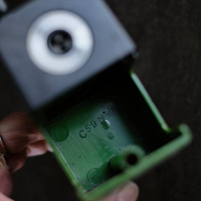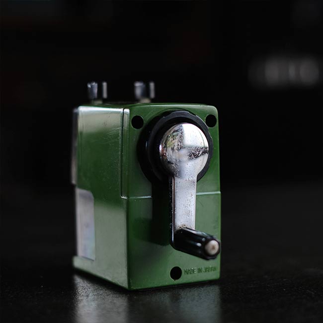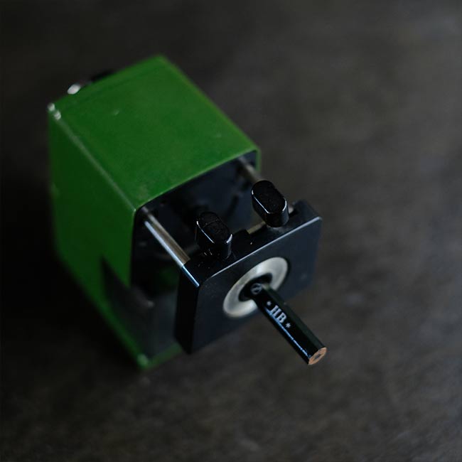 文具類を広く手掛けていたエルムの鉛筆削りになります。手の平サイズと言ってもいいくらいの小型で、1970年代あたりのものでしょうか。カラーはオリーブグリーンです。