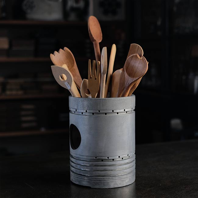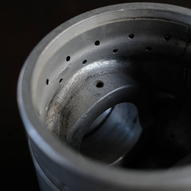 直径が17cmあるエンジンのピストンになります。どのようなエンジンに使われていたのかは不明ですが、サイズは大きく、重さは5.8キロほどあります。入れ物か、あるいはひっくり返して展示台としても使えそうです。