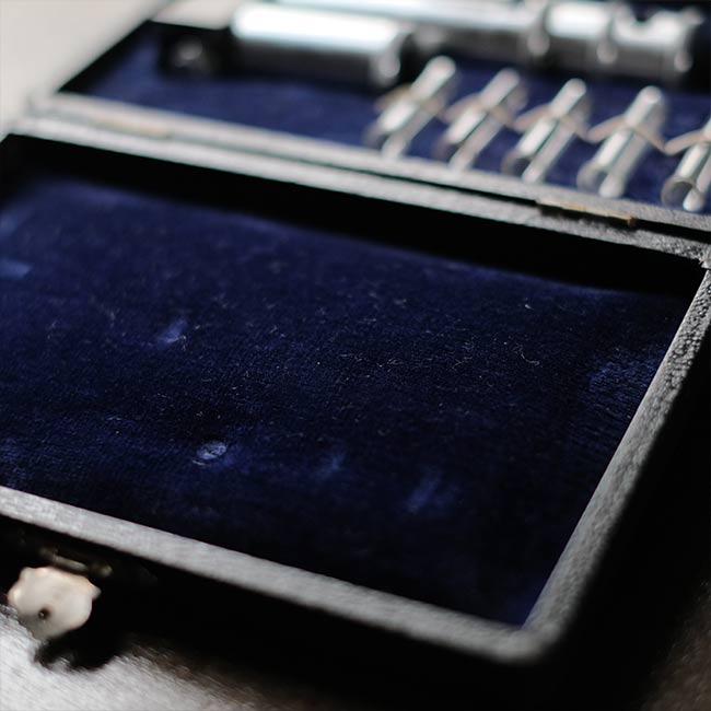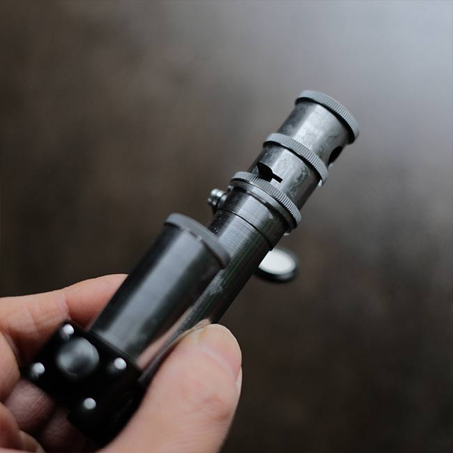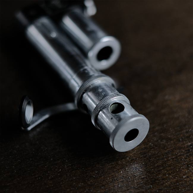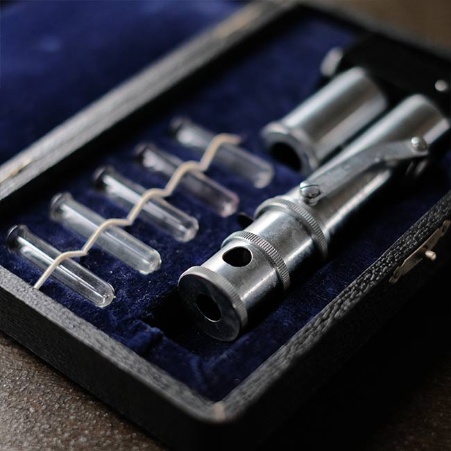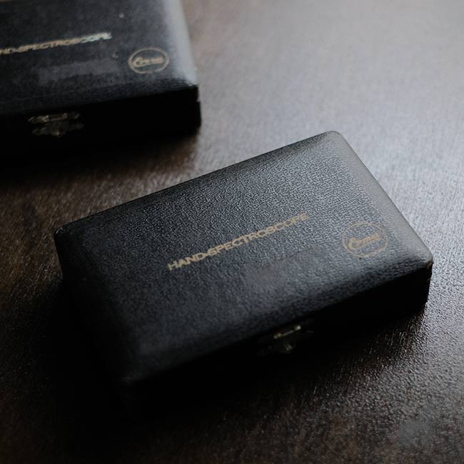 光を波長(色)ごとに分けて観察するための光学機器。食品の成分や天体の組成分析など、様々な分野で活用されていますが、本品は宝石の鑑定に使われていたものになります。