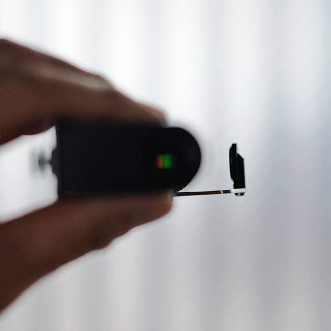 ケースに収められており、小さな試験管が付属。レンズからのぞくと虹色のバンド’(7枚目の写真)が見えますが、宝石の種類によってバンドのどこかに線が入るのだそうです。