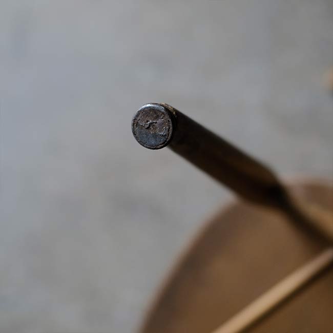 100年の歴史を持つイギリスの家具メーカー、アーコールのスタッキングチェア。バーの背面に赤い印の付くチャイルドチェアで、主に学校で使われていたものになります。背もたれのバーがシングルですが、下段は破損かなにかのタイミングで取り外したようです。