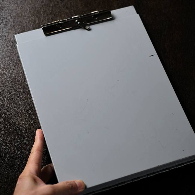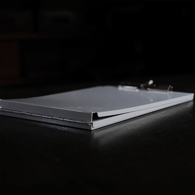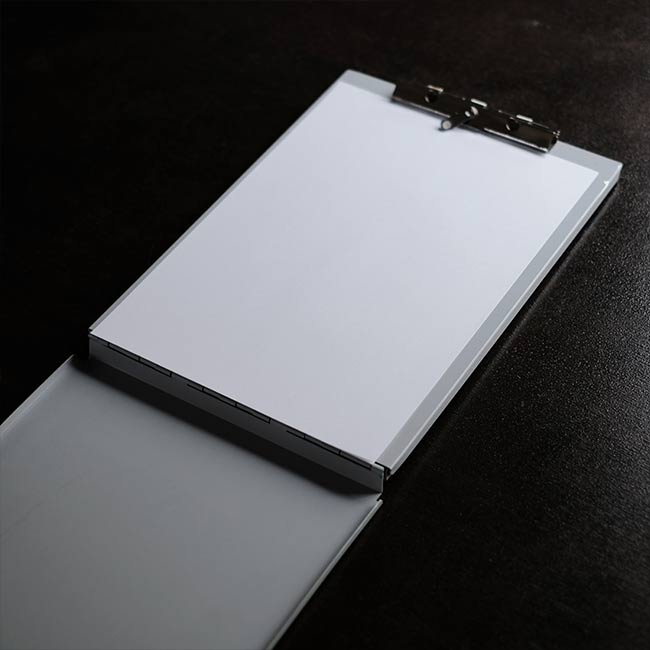 A4サイズのクリップボードと、A4サイズのノートホルダーが一緒になった一品。クリップボード部分にはカバーが付属。クリップはギザギザなので、用紙に傷をつけたくない場合は挟まにように。