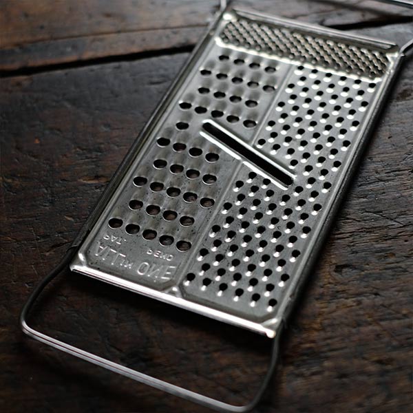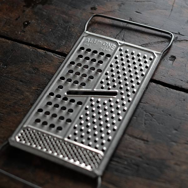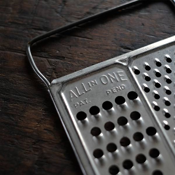アメリカの古いおろし金です。「All in One」と書いてあるとおり、3通りの削り方ができます。