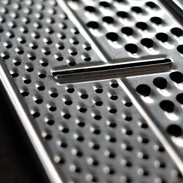 素材はブリキかと思われますが、表面のメッキの剥がれが非常に少なく、この手の古いおろし金としてはかなりキレイな状態と言えます。表面は磨いてあるので、古いものに慣れてる方には実際にご使用いただけるかと思います。