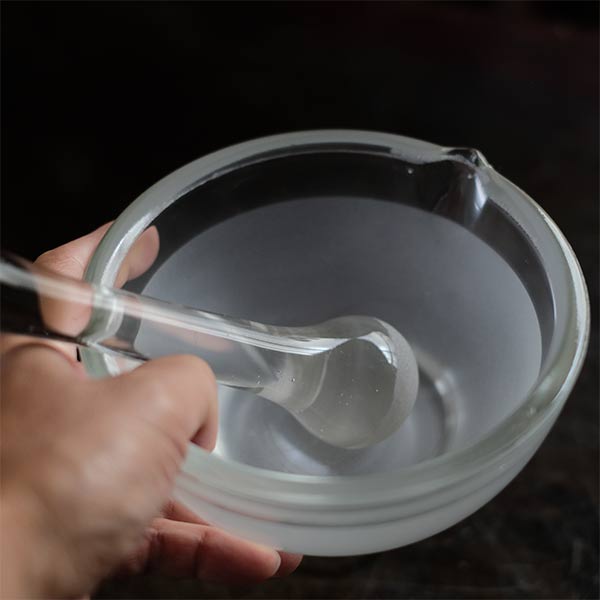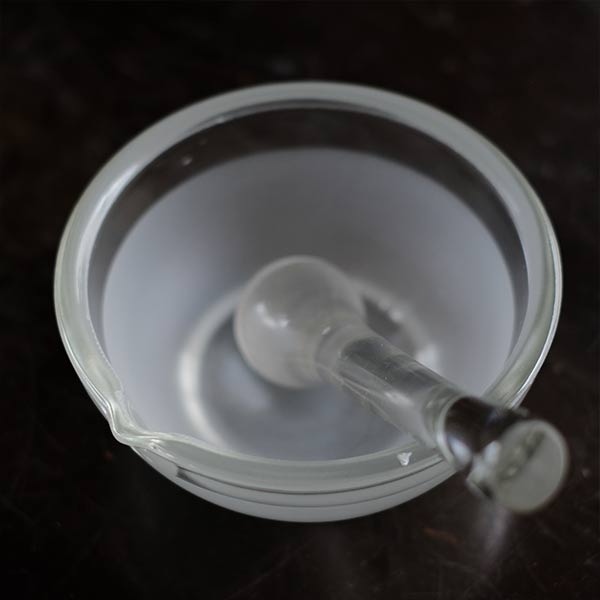 薬をすりつぶしたり混ぜ合わせたりするのに使われる乳鉢。乳鉢は白磁のものが主流となりますが、本品は大きめのガラス製となっております。