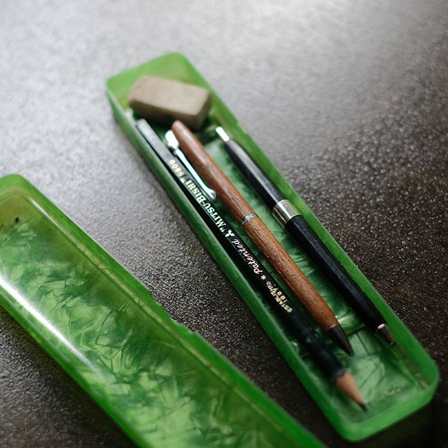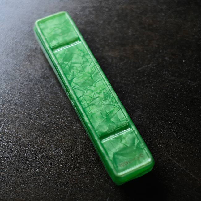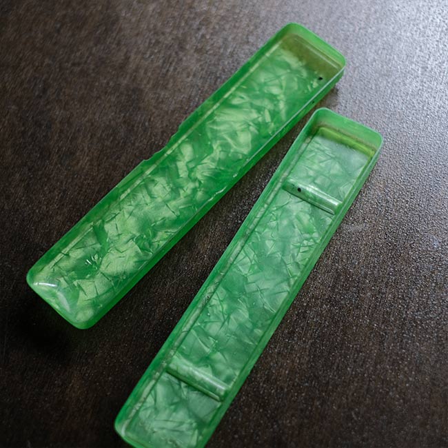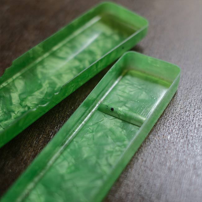 昭和の時代に使われていたセルロイドのペンケースです。1950~1960年代のものと思われ、細身で鮮やかなカラー。クリーニング済みですが、小キズやシミが若干残りますことをご了承下さい。