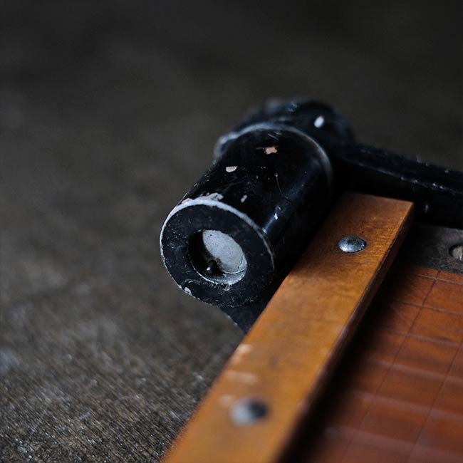 裁断バーの付け根のネジが出っ張っていますが、これ以上締めると刃と刃の間の隙間が広がりますので、普通にお使いいただく場合はこれ以上締めないようご注意下さい。