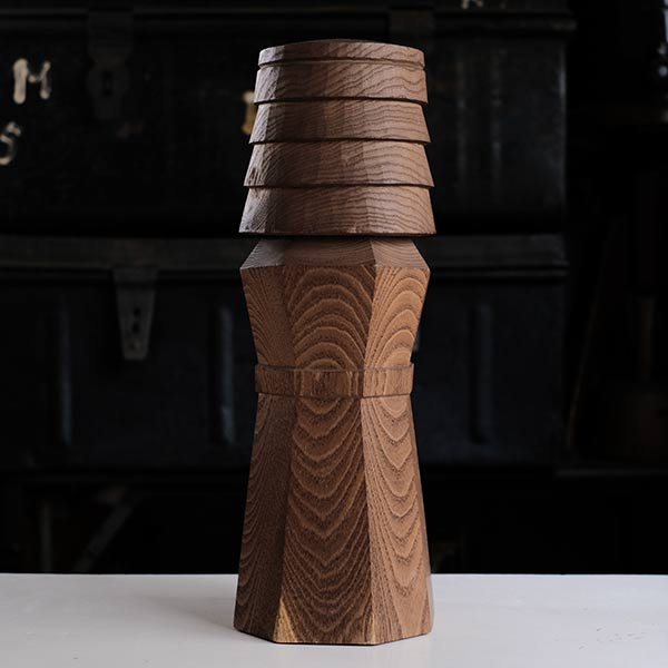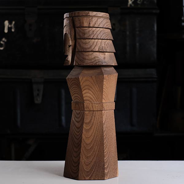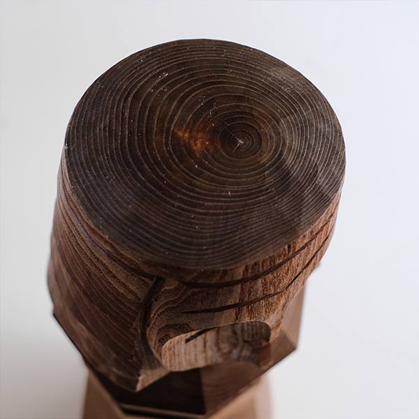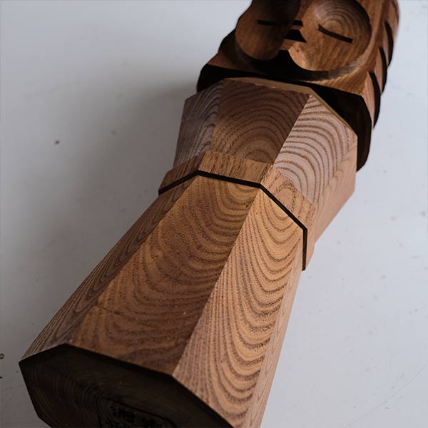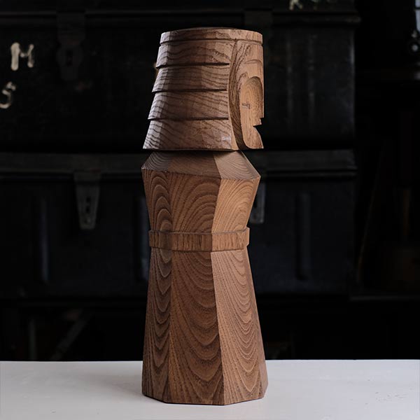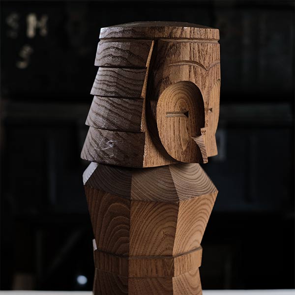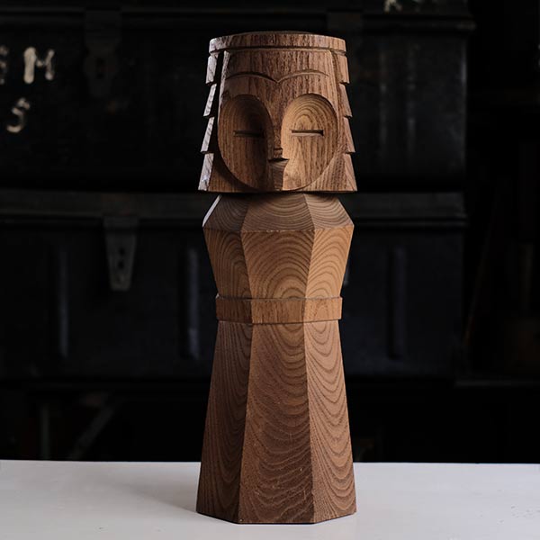 網走刑務所の受刑者が道内に自生する槐(えんじゅ)の木を一本一本手作業で削って制作しているニポポ人形。願いをかなえる神様が原型となっているそうで、静かに目を閉じ、口を少し開いた表情。わりと簡素な彫りですが、ながめていると心が穏やかになってきます。サイズは大きめで、なかなかの重量。表面的な傷は多少見受けられますが、目立つダメージは見られません。
