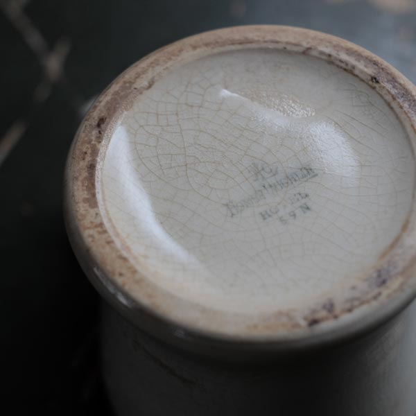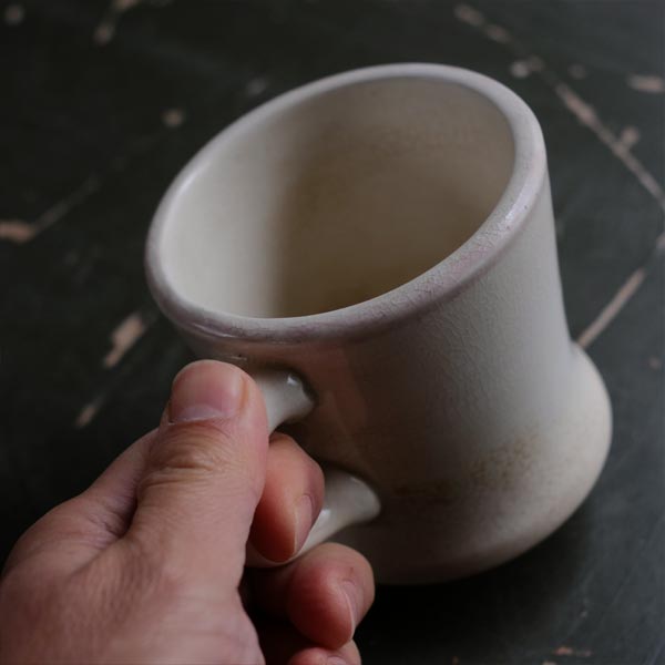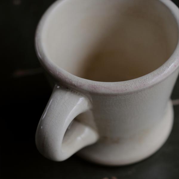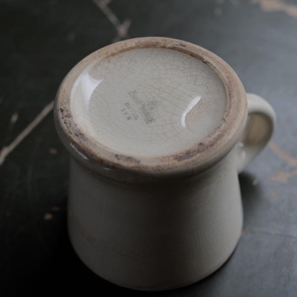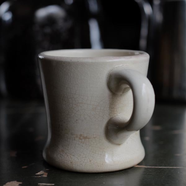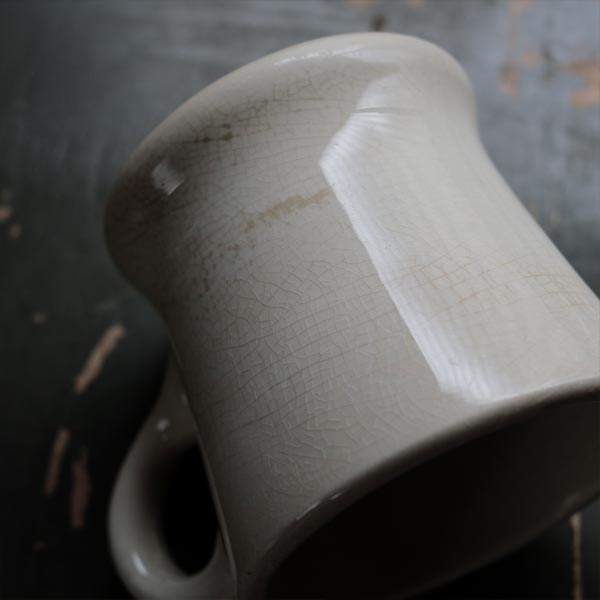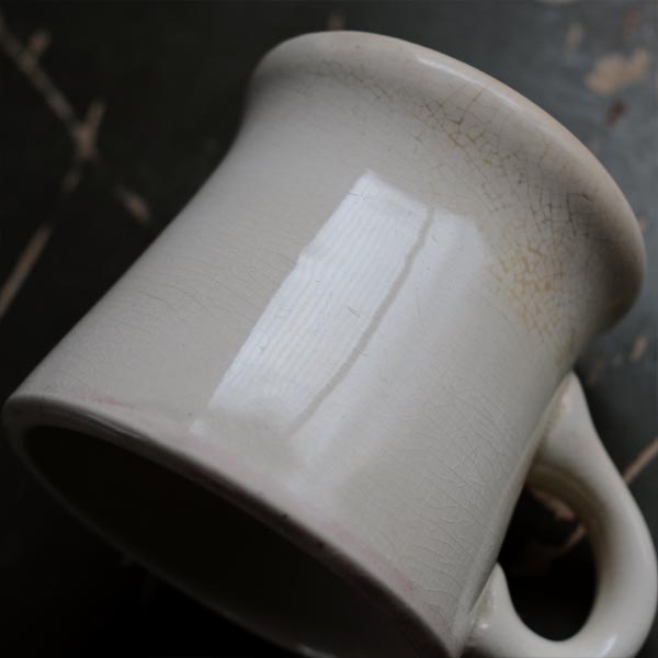 年代的にはアンティークと呼んでも差し支えない古さですが、この年代のアメリカのマグカップがこのようなコンディションで見つかるのは、とても稀なケース。キズは少なく、ツヤもしっかり残っているため、シミや貫入はあっても、汚らしい印象を与えません。お好きなお客様はぜひ。