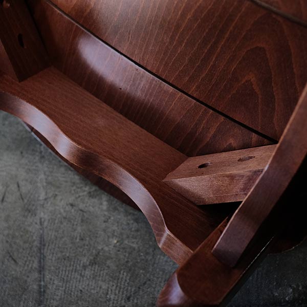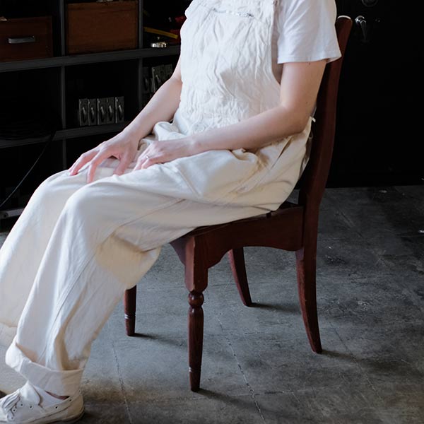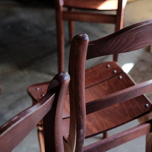 デザインの上では、湾曲した座面がとても特徴的で、長大作氏の代表作「ダイニングチェア(合板小椅子)」を彷彿とさせます。全体的なサイズ感はコンパクトで、ゆったりリラックスという椅子ではありませんが、座ってみると案外お尻の収まりがよく、日本の住宅事情にうまくマッチした優品かと思います。