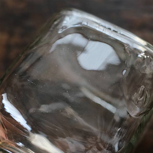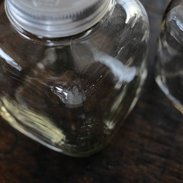 背が低く、独特のフォルムをしたIris Coffeeのコーヒージャーです。名前のとおりコーヒー豆の販売に使われていたガラス製の容器で、口のサイズは一般的なメイソンジャーのレギュラーマウスサイズ。蓋はもともと文字がプリントされたものが付属していたはずですが、損なわれていたため、実用性の高いPrestoの蓋を用意しました。