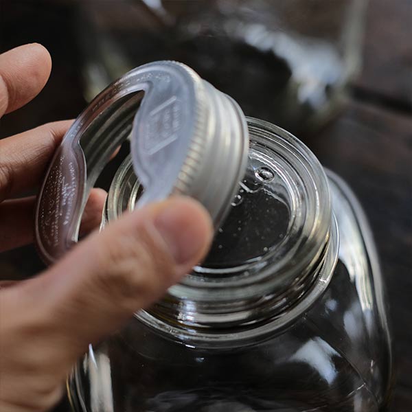 この蓋はガラスの蓋を金属のリングで締めて留める構造になっていて、ジャーの中身はガラスにしか触れないため、食べ物の保存にも安心して使えるというメリットがあります。