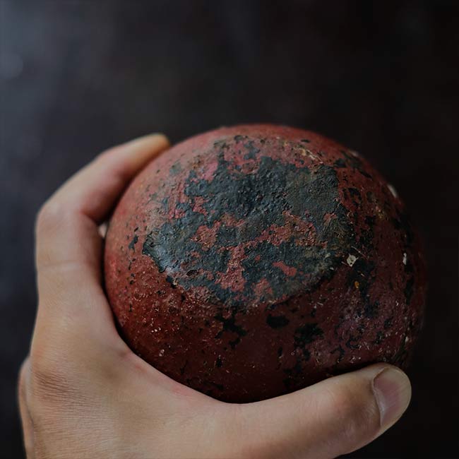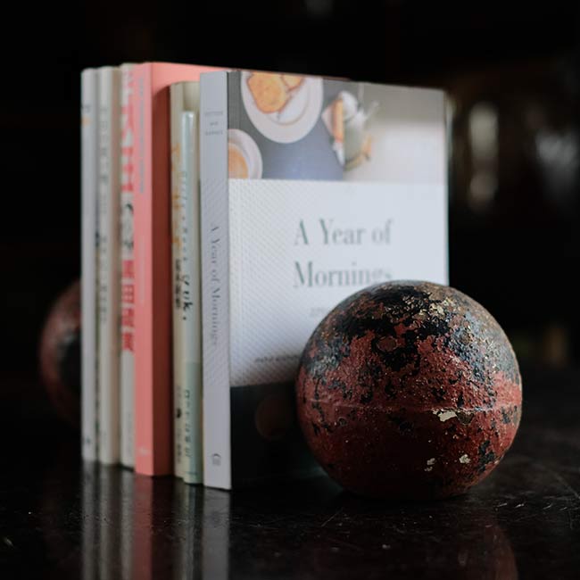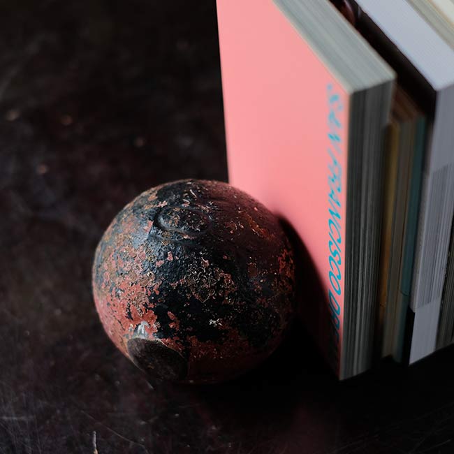 鉄アレイの柄の部分がカットされた鉄球を仕入れました。誰が何のためにこんなことしたのかわかりませんが、もしこれをブックエンドに使うために柄を切ったのだとしたら、相当な洒落者だなと思う。塗装のぺりぺり具合もすごくいいです。