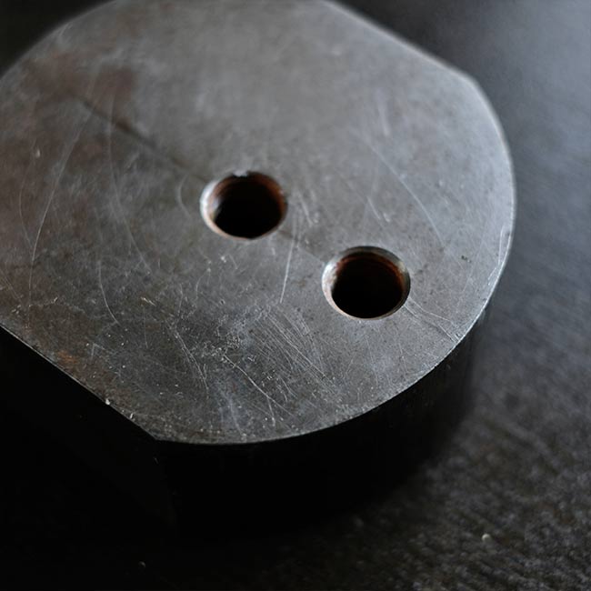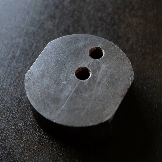 裏表でテクスチャが異なり、光沢のある側に14mmのネジ穴が2つあいています。
