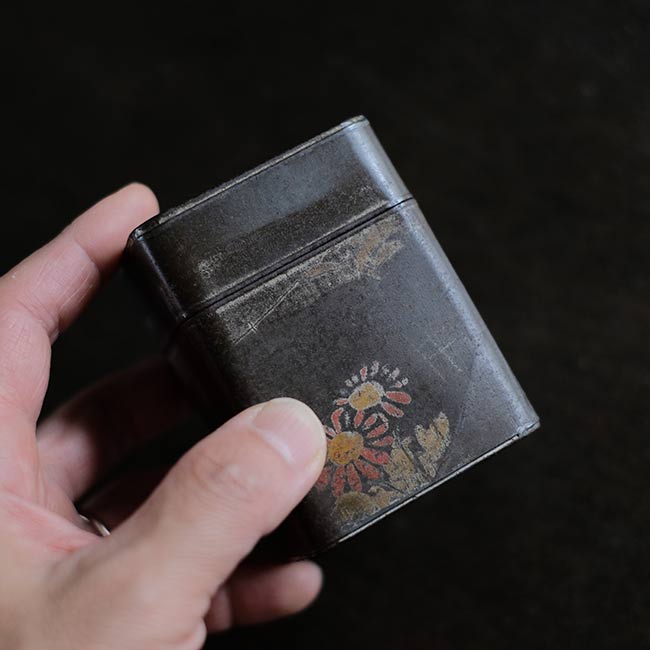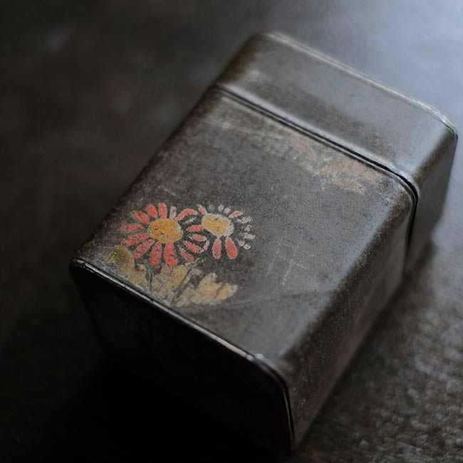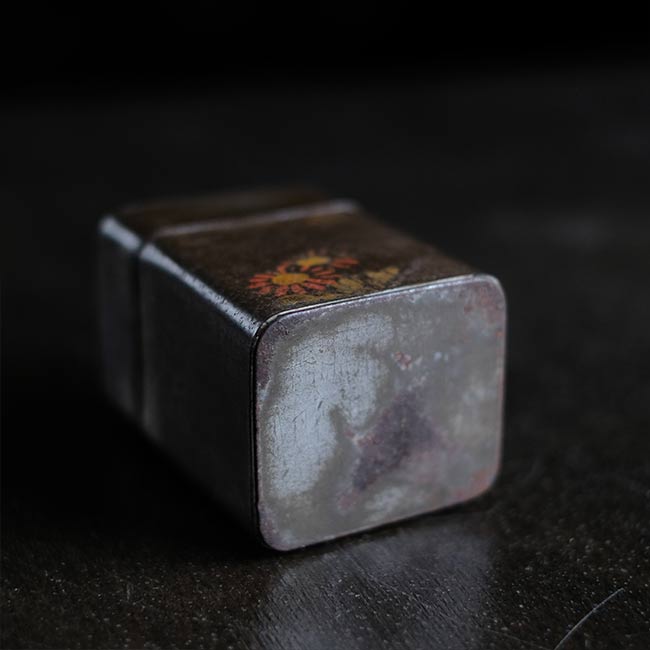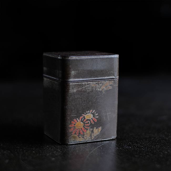 背面に「根ぎし 香味屋」と入っているので、老舗洋食店 香味屋の缶で間違いないでしょう。結構珍しいもののようですが、お菓子かなにかが入ってたのでしょうか。前面には花の絵柄が入っています。